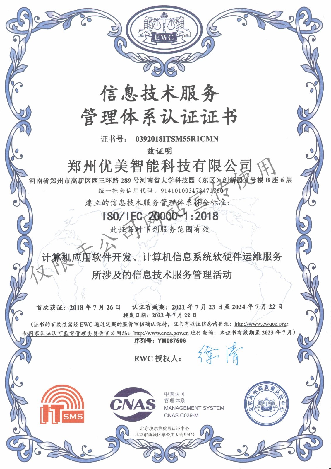 ISO20000ÐÅÏ¢¼¼Êõ·þÎñÖÎÀíϵͳÈÏÖ¤Ö¤Êé
