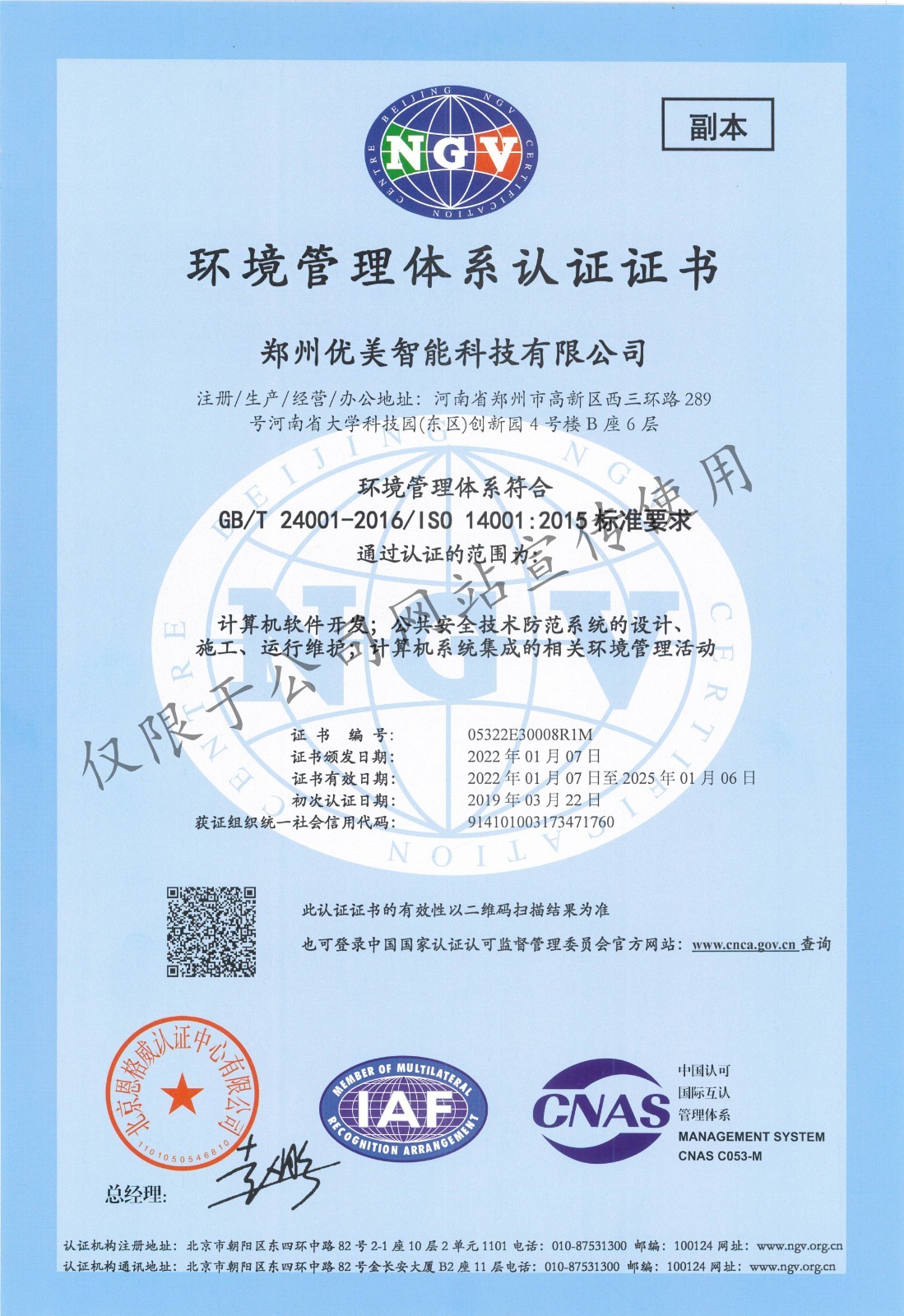 »·¾³ÖÎÀíϵͳÈÏÖ¤Ö¤Êé