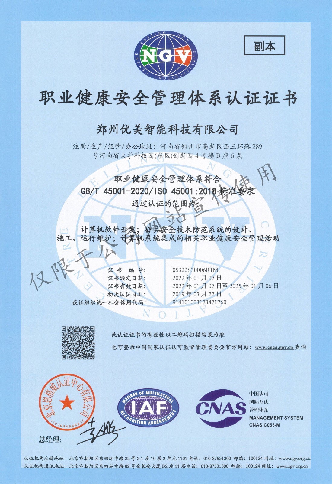 Ö°Òµ½¡È«°²È«ÖÎÀíϵͳÈÏÖ¤Ö¤Êé