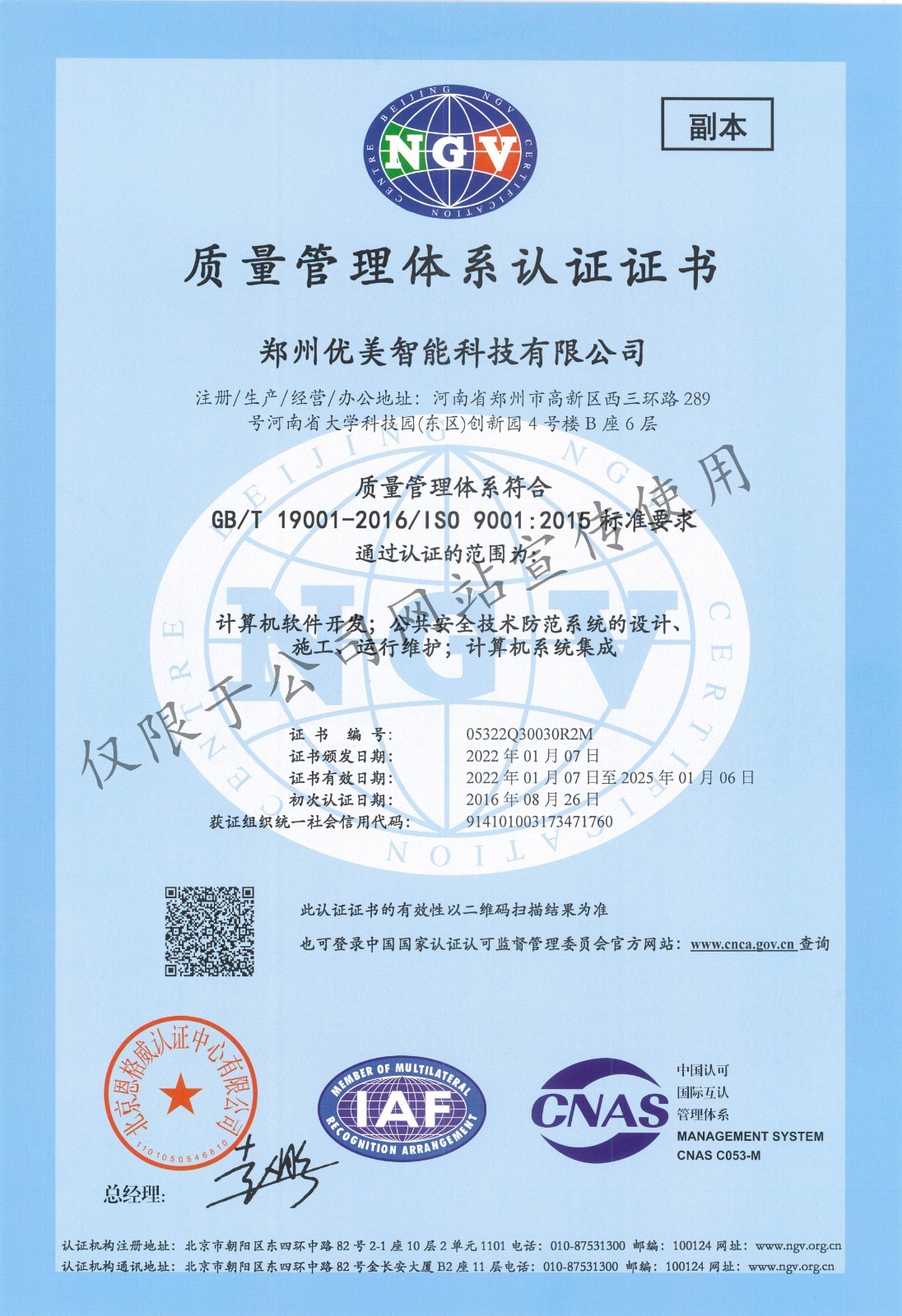 ÖÊÁ¿ÖÎÀíϵͳÈÏÖ¤Ö¤Êé